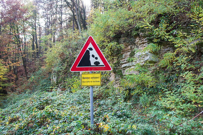 Erneute Gefahr beim Abstieg nach Tegernheim. Immerhin stoßen hier drei Geo-Formationen aneinander.