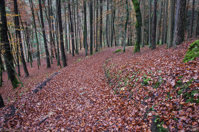 Weiter auf dem Burgensteig. Abstieg in den Holzgraben.