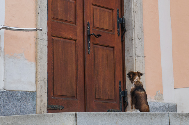 Während wir die Kirche besichtigen, wartet Nella brav vor der Tür.