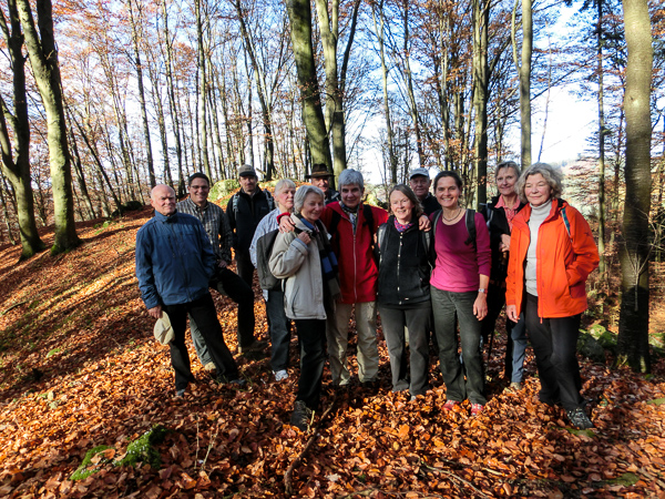 Hier die 12 wackeren WanderInnen, die sich durch das unerwartete Wetter nicht entmutigen lassen.