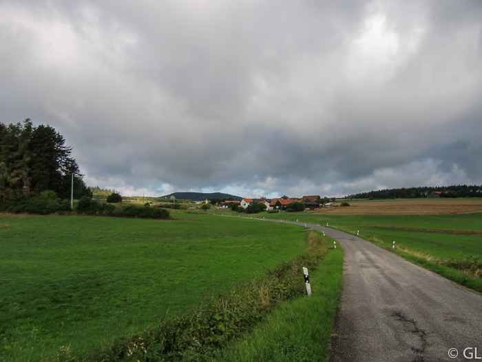 Zwischendurch kleine Teerstrecken. Auch das schaffen alle. Am Horizont der Kulm!
