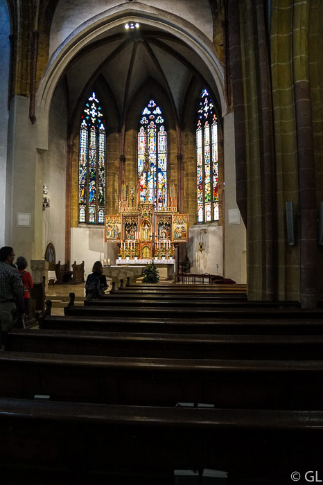Im Kirchenführer steht "dreischiffige, doppelchörige Säulenbasilika".