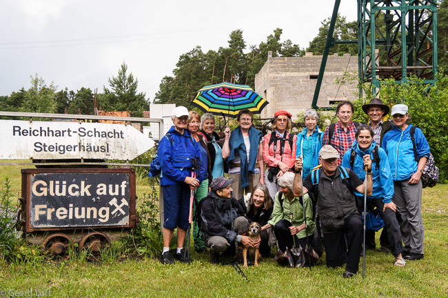 14 Wanderer, alle auf den Hund gekommen und gut sonnenbeschirmt!