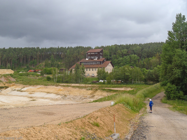 1942 von Häftlingen gebaut, bergbaulicher Höhepunkt in den 1950ern, Schluss 1978, endültig aufgegeben 2013: die Flusspataufbereitung