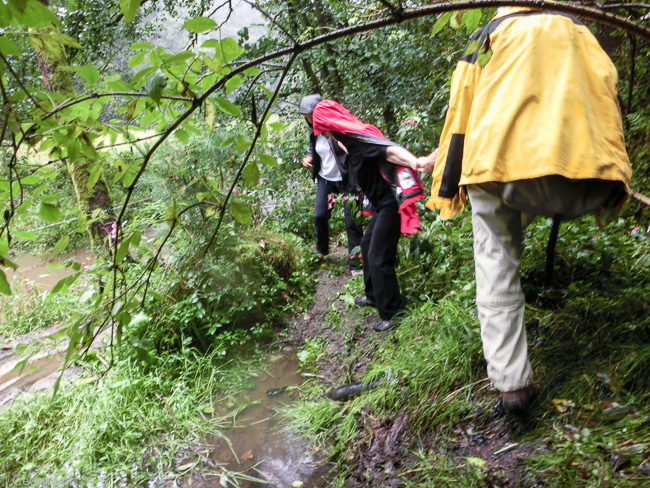 Die überfluteten Singletrails (so heißt das jetzt) bringen interessante Körperhaltungen hervor.